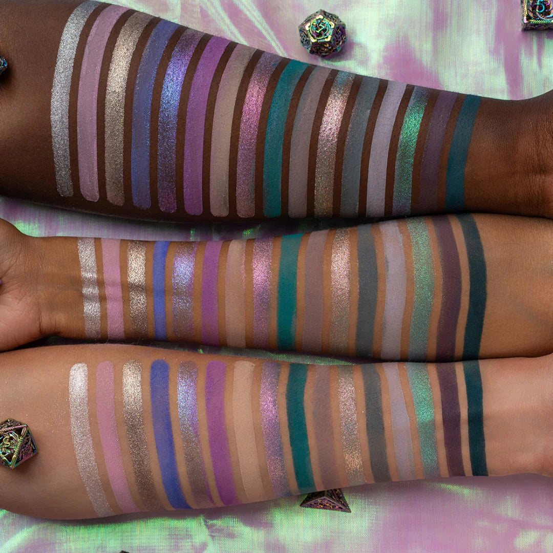 Each shade is a gateway to another world - from glowing purples to shimmering blue-greens. The palette offers a balanced mix of matte, shimmer, metallic, duochrome and multichrome finishes, allowing you to create everything from soft, ethereal glam to bold, dragon-like drama.