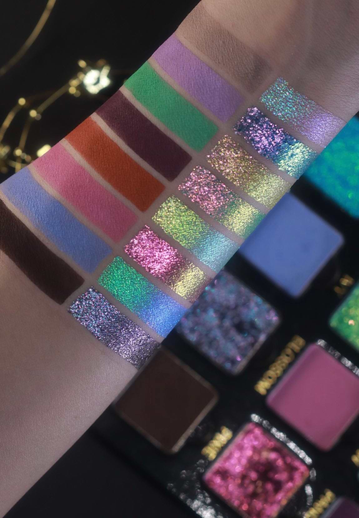 Wkrocz do nowego świata lśniącego magicznego pyłu i pryzmatycznych pasteli z naszą żywą i elegancką magnetyczną paletą cieni do powiek z wielokolorowym pastelowym połyskiem.